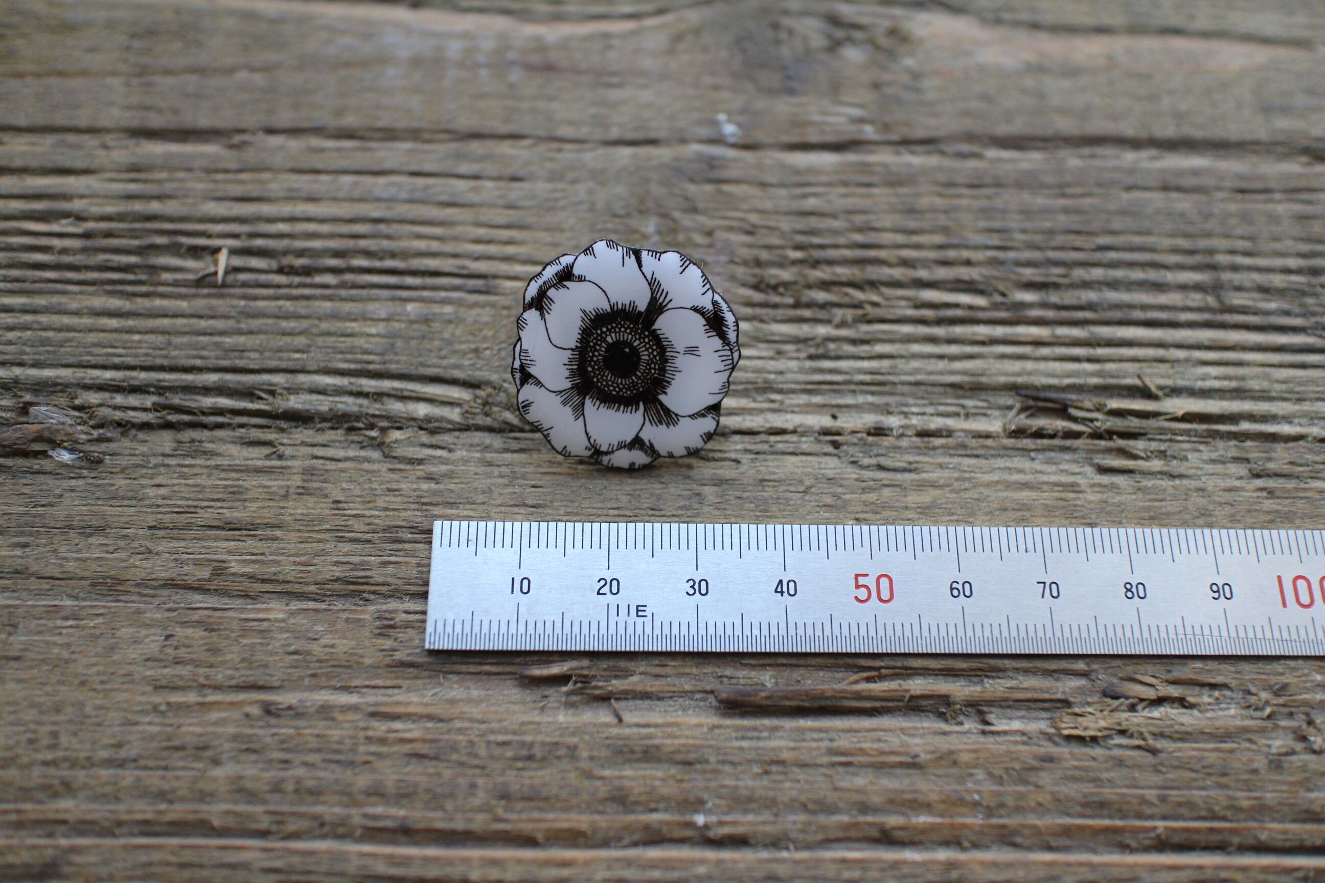 白いプラ板にインクジェットで絵柄を印刷しレジンで加工しています。