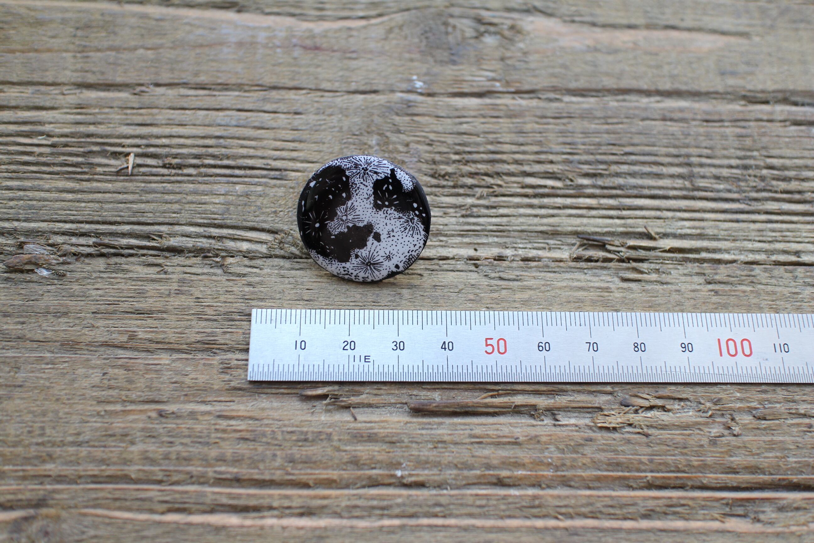 白いプラ板にインクジェットで絵柄を印刷しレジンで加工しています。