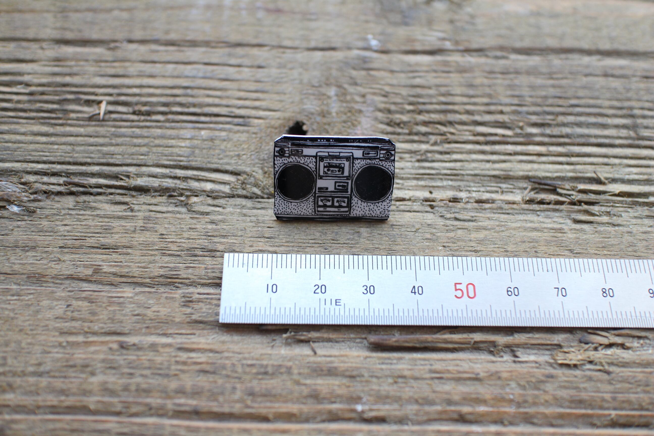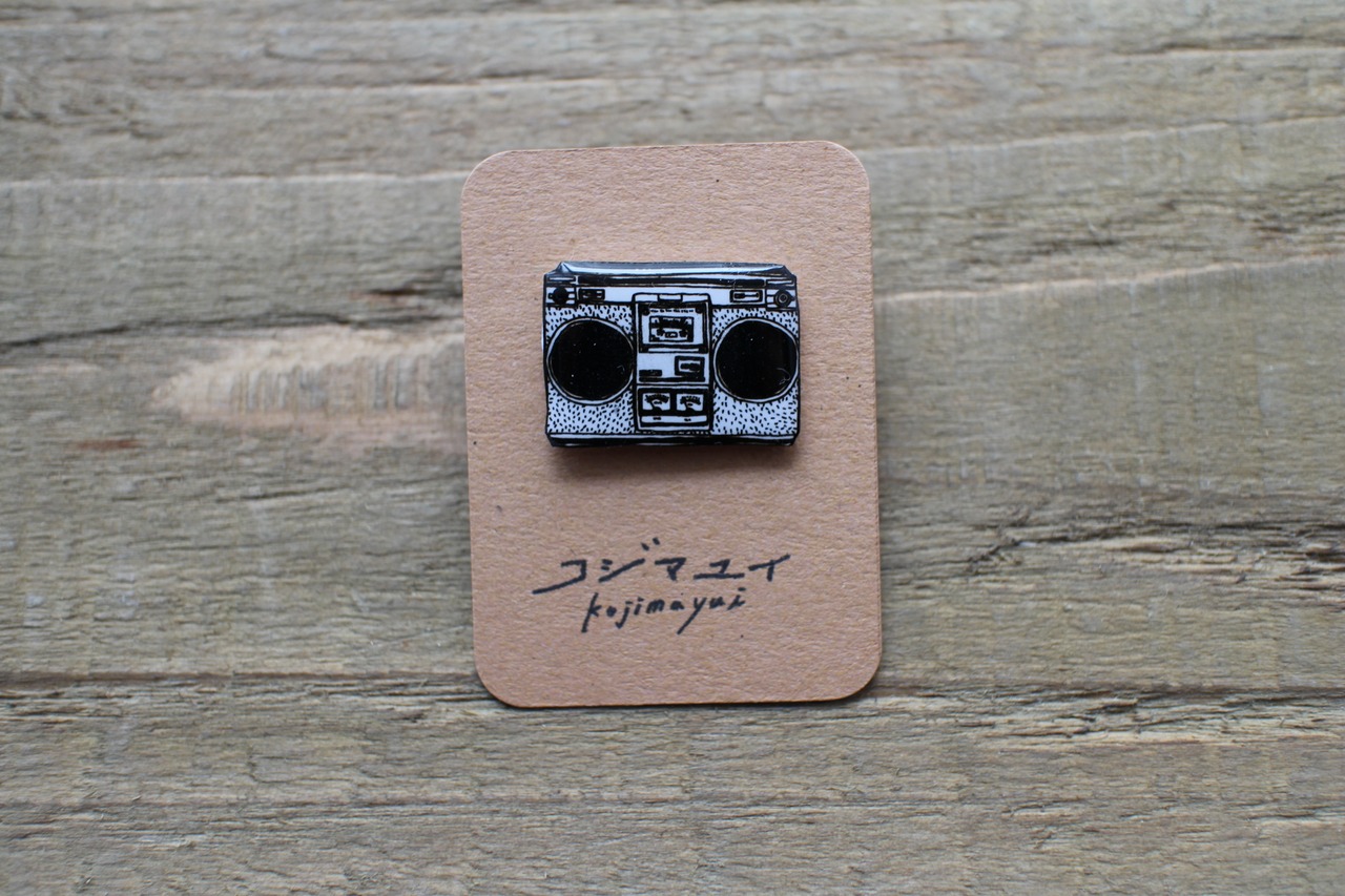 ラジカセ柄のピンバッジです。