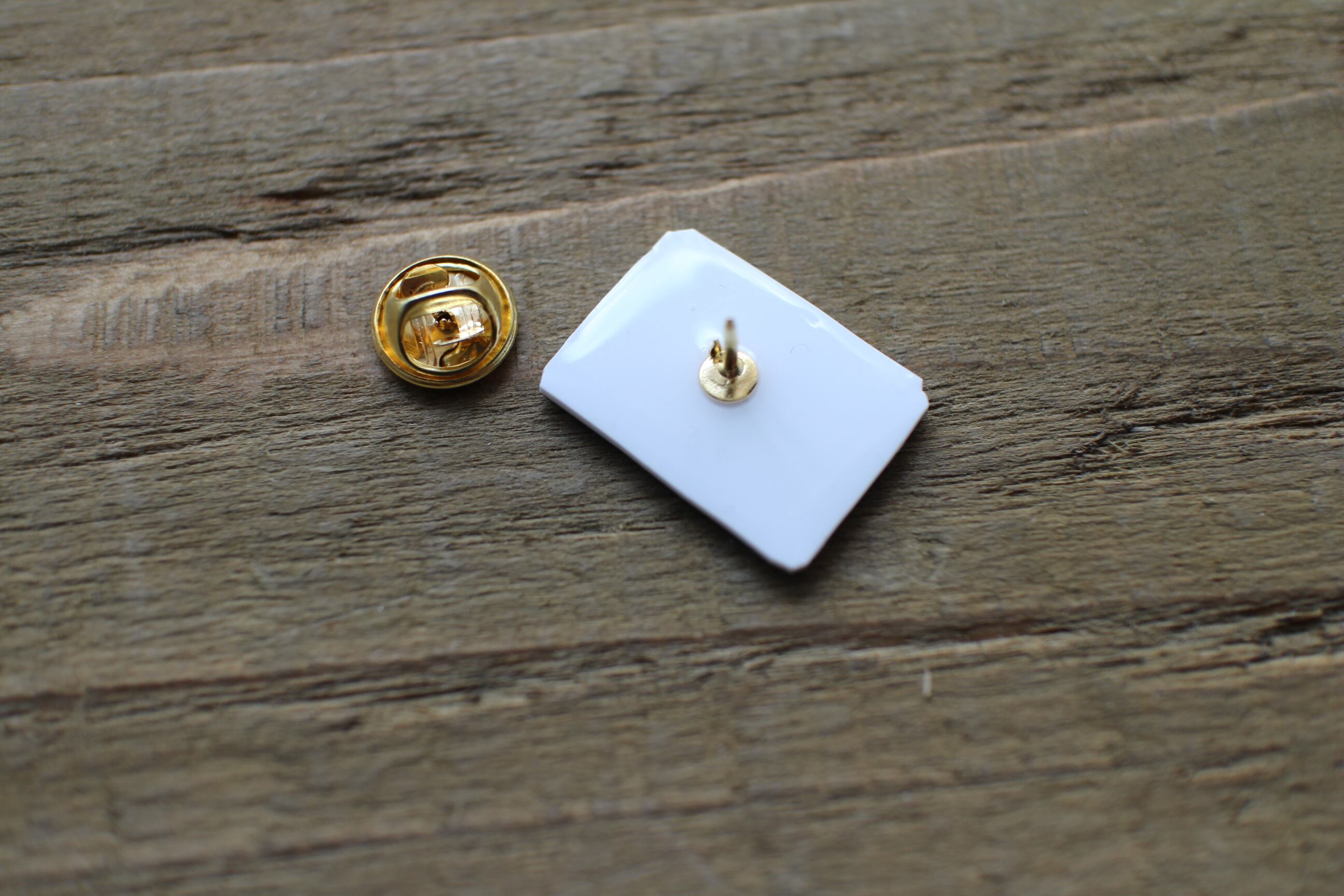 白いプラ板にインクジェットで絵柄を印刷しレジンで加工しています。