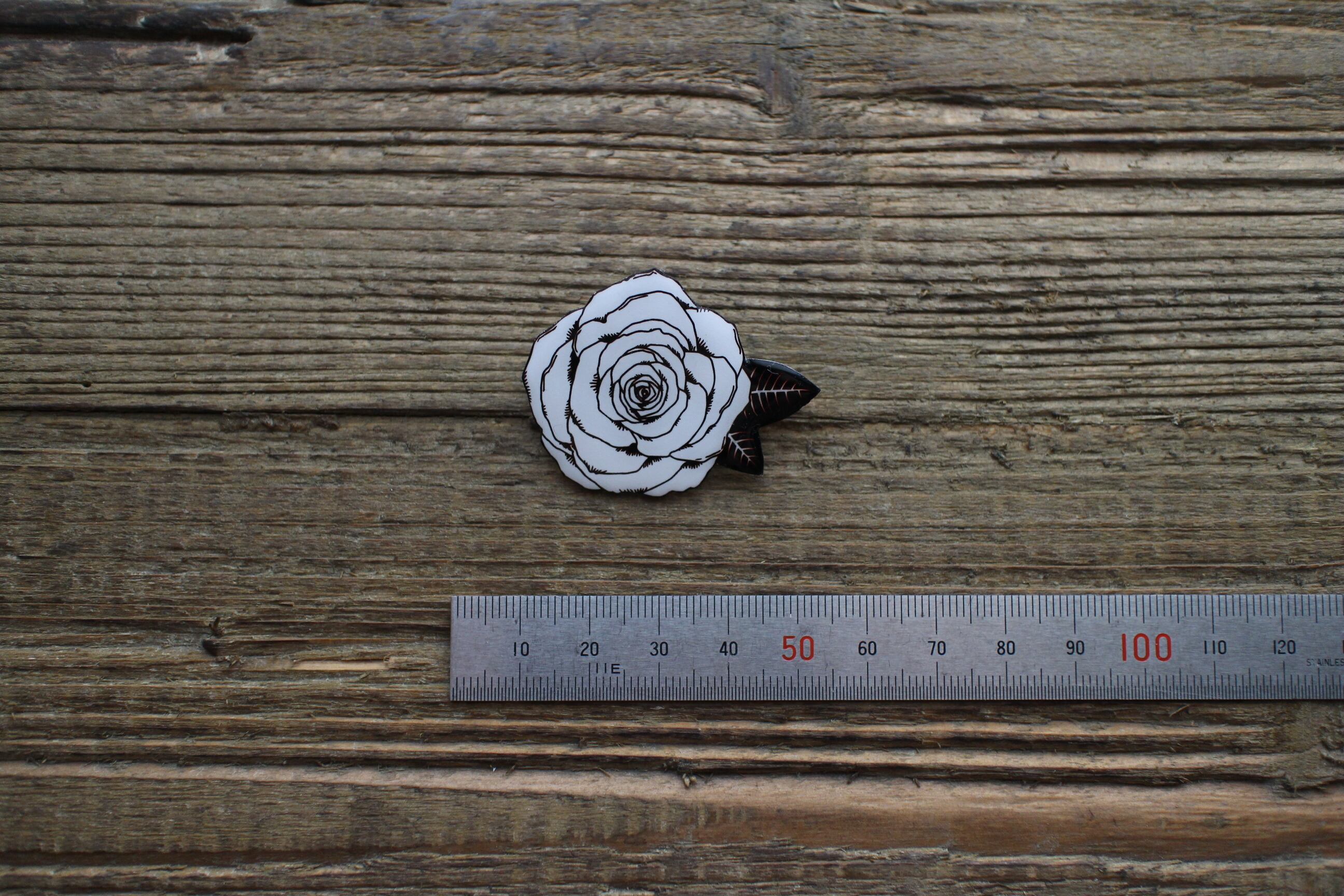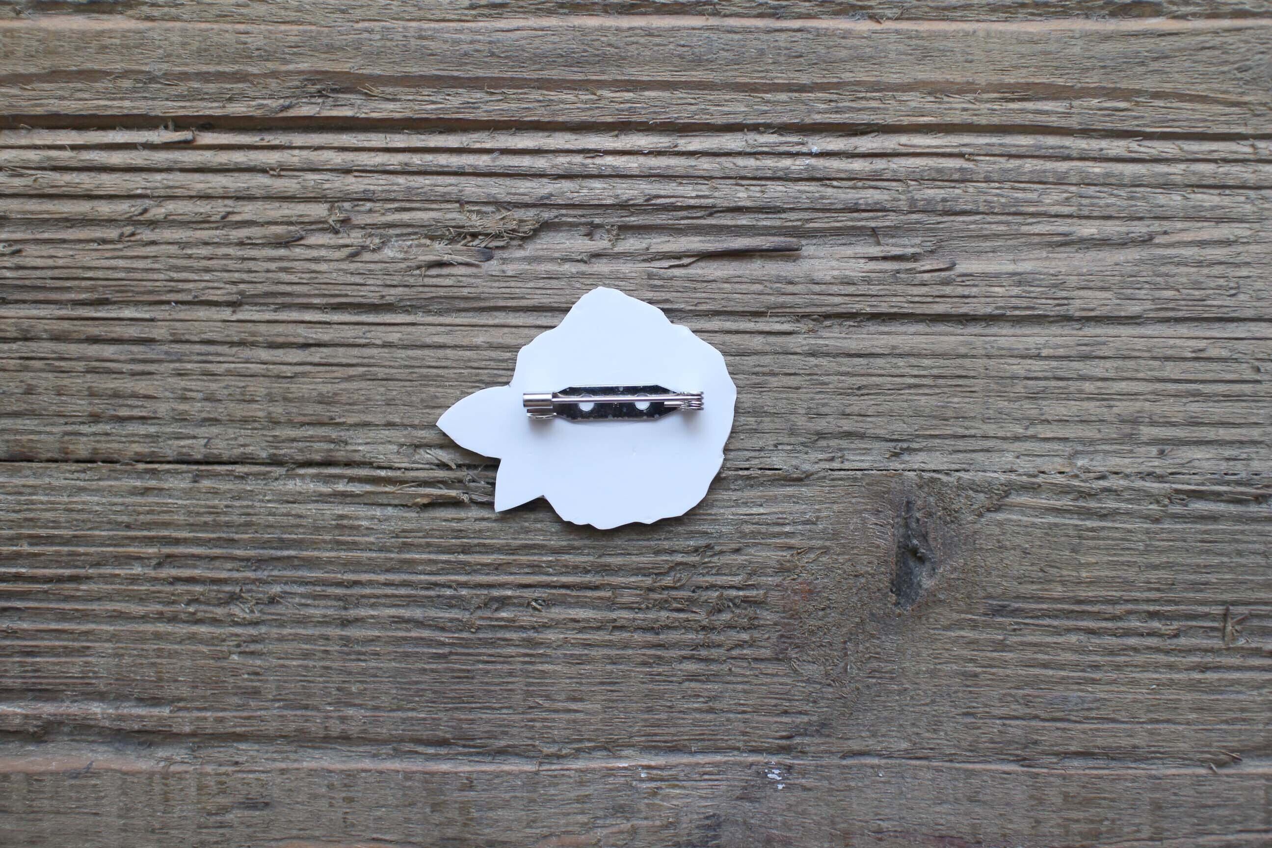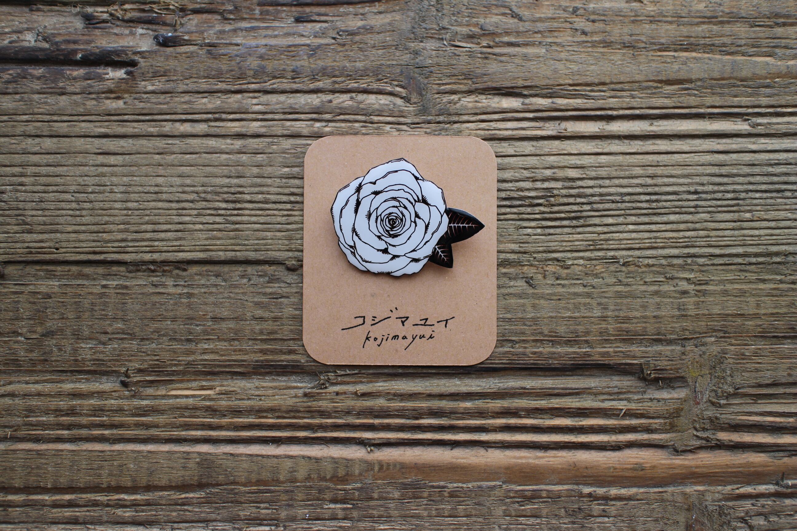 白いプラ板にインクジェットで絵柄を印刷しレジンで加工しています。