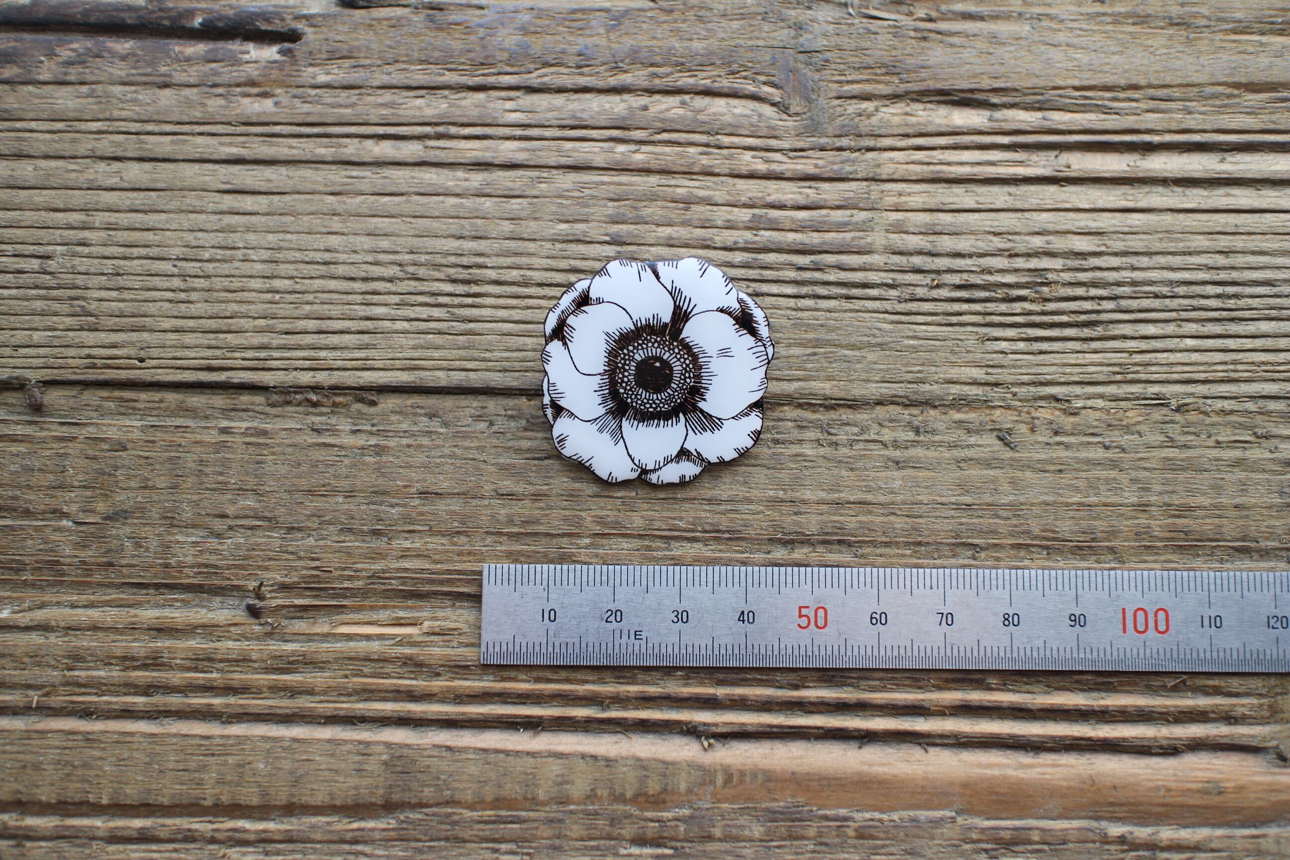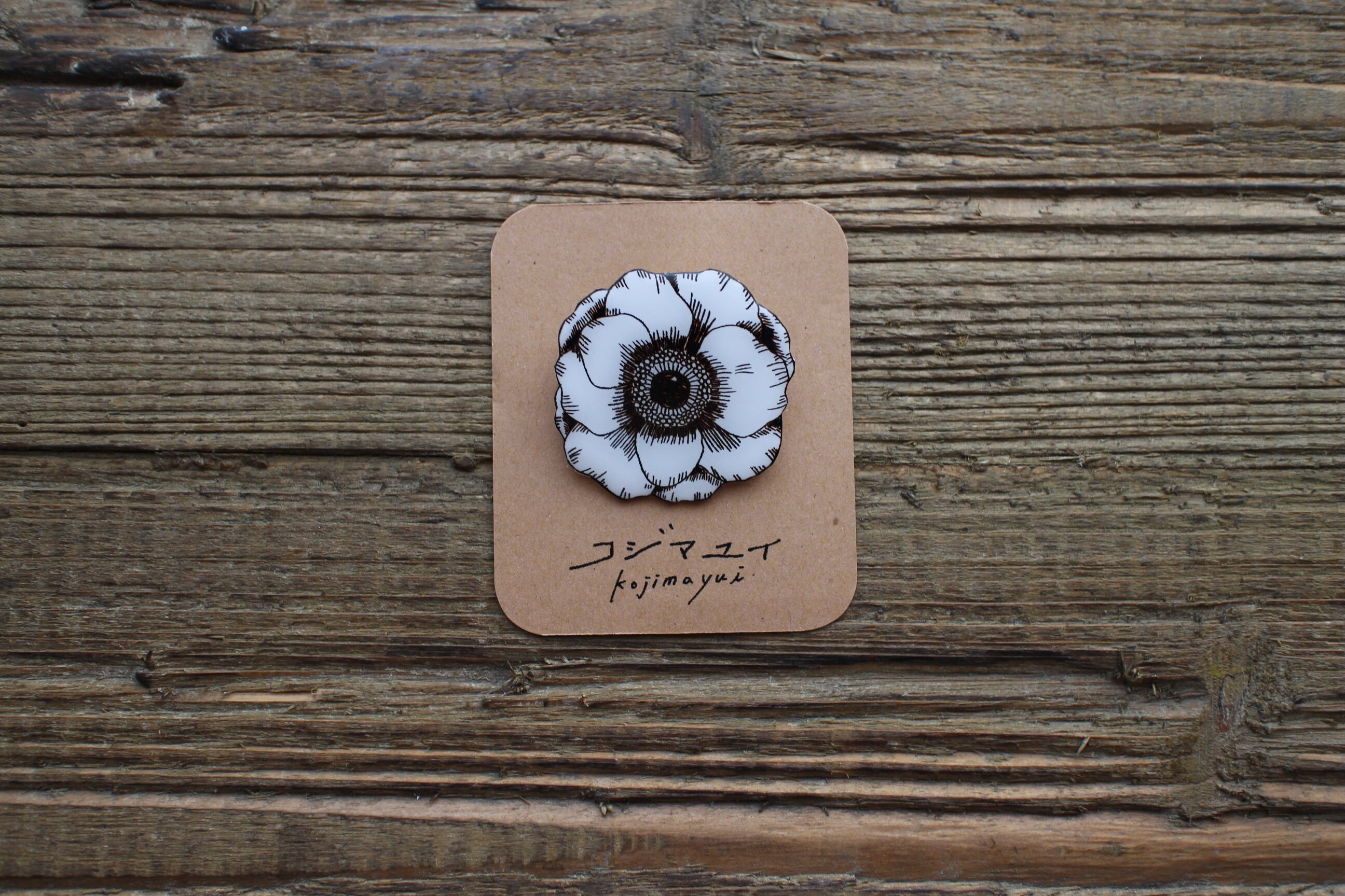 白いプラ板にインクジェットで絵柄を印刷しレジンで加工しています。