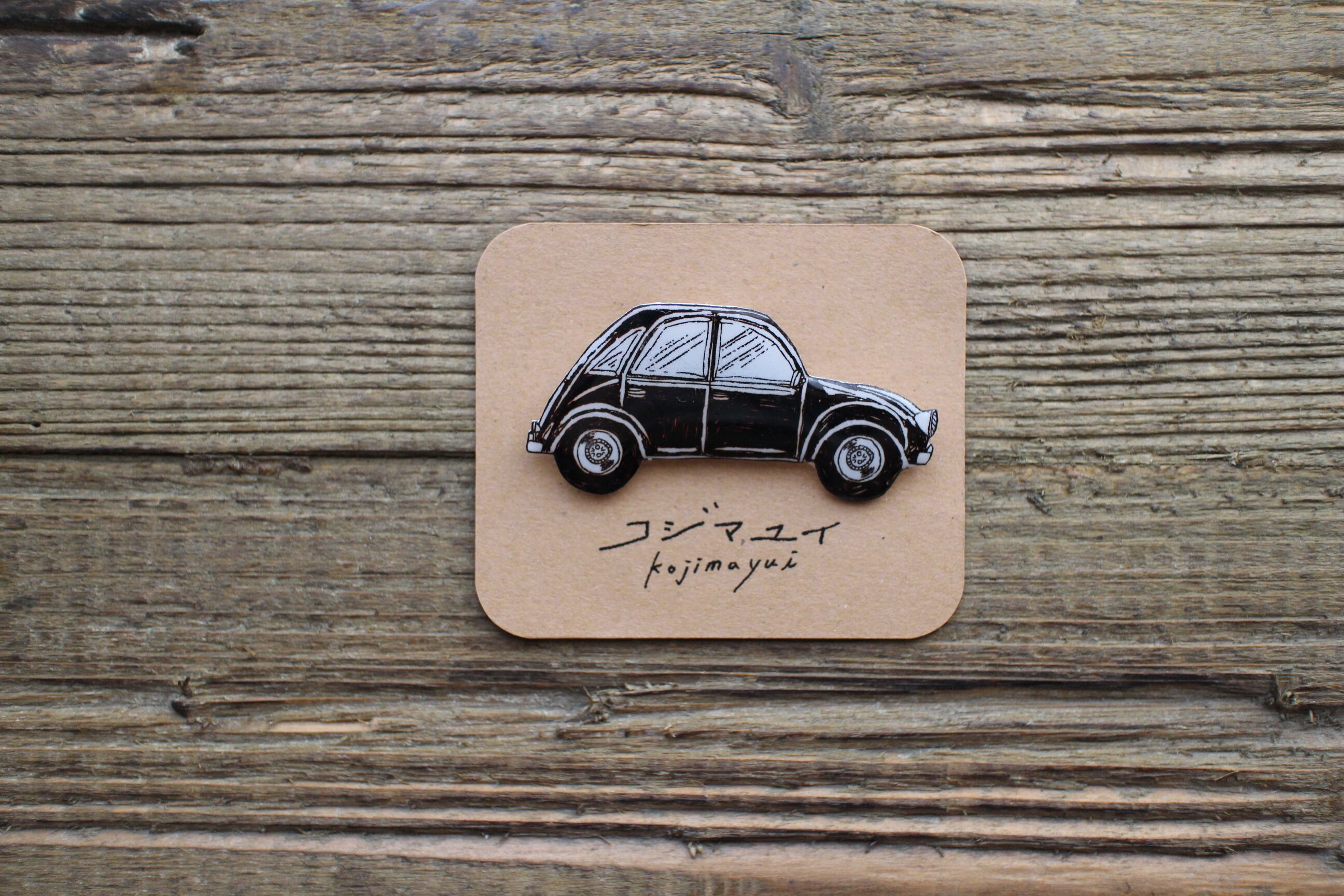 白いプラ板にインクジェットで絵柄を印刷しレジンで加工しています。