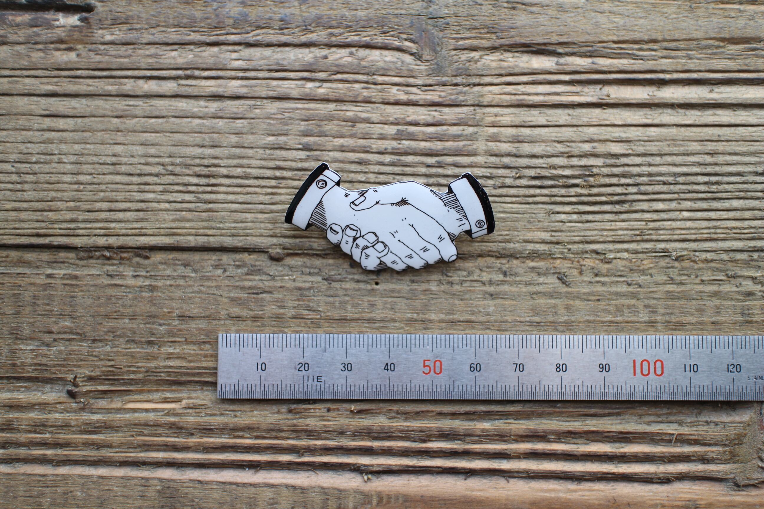 白いプラ板にインクジェットで絵柄を印刷しレジンで加工しています。