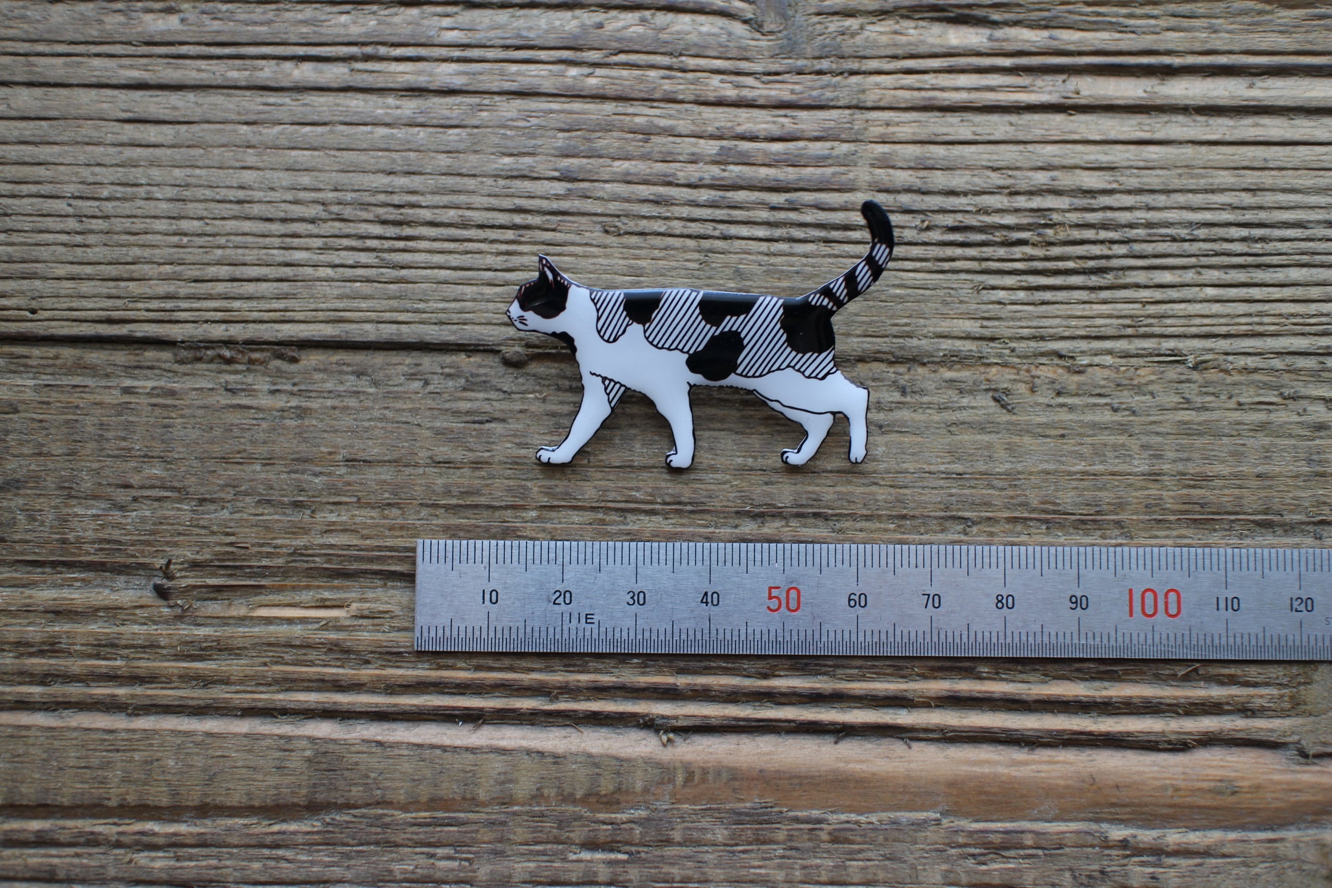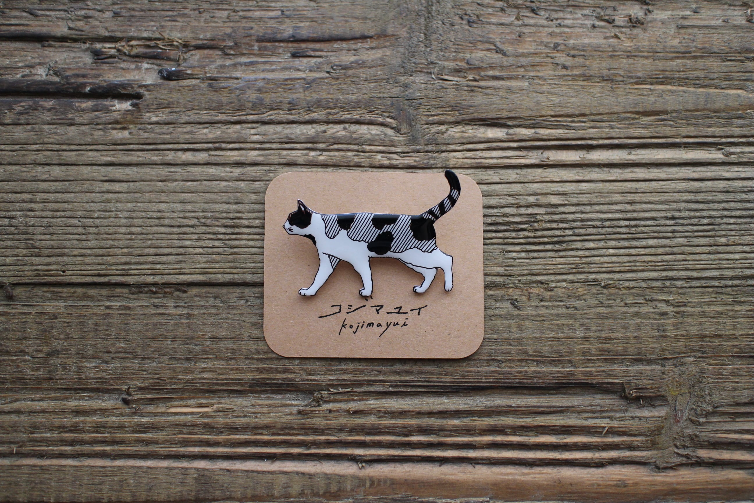 白いプラ板にインクジェットで絵柄を印刷しレジンで加工しています。