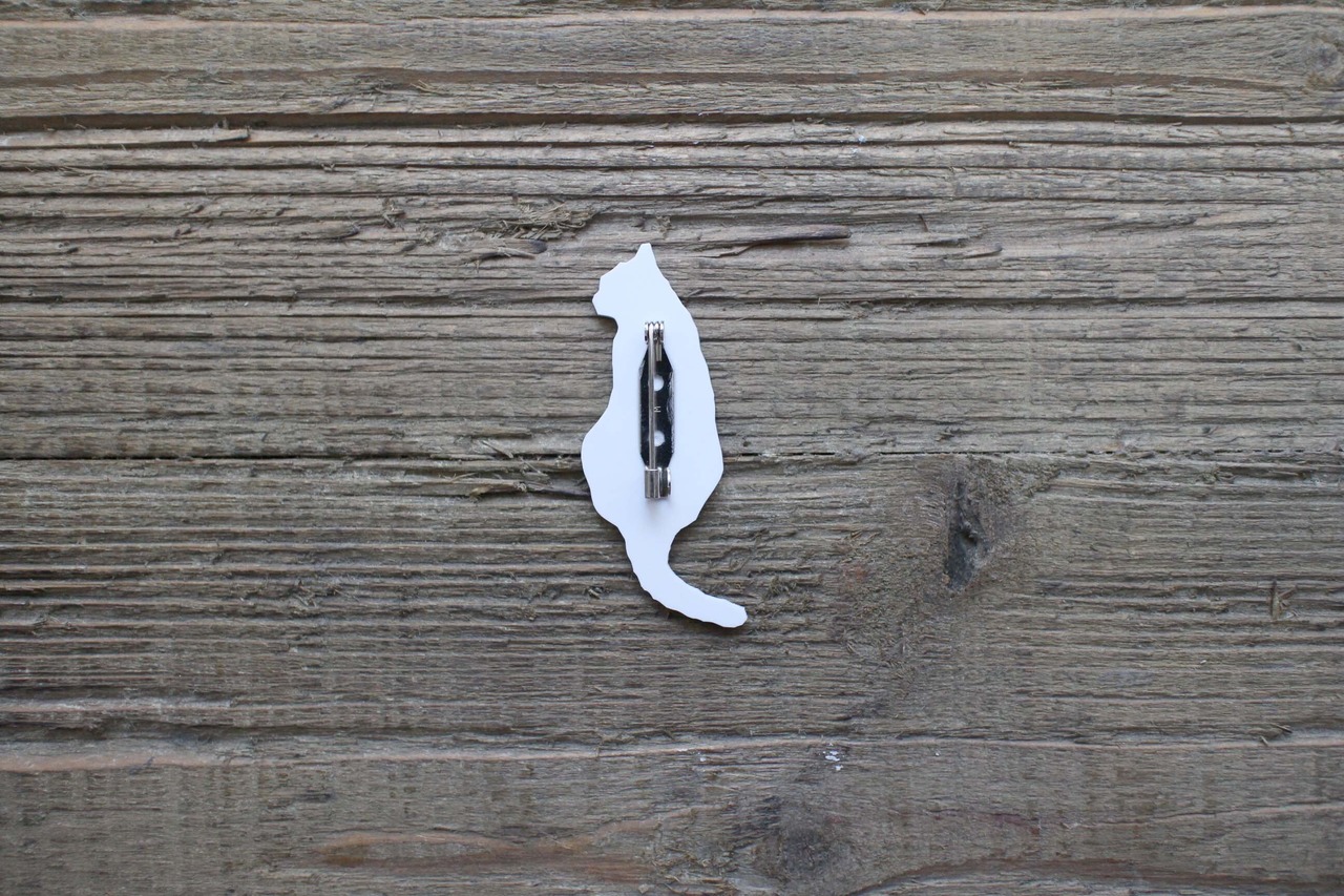 白いプラ板にインクジェットで絵柄を印刷しレジンで加工しています。